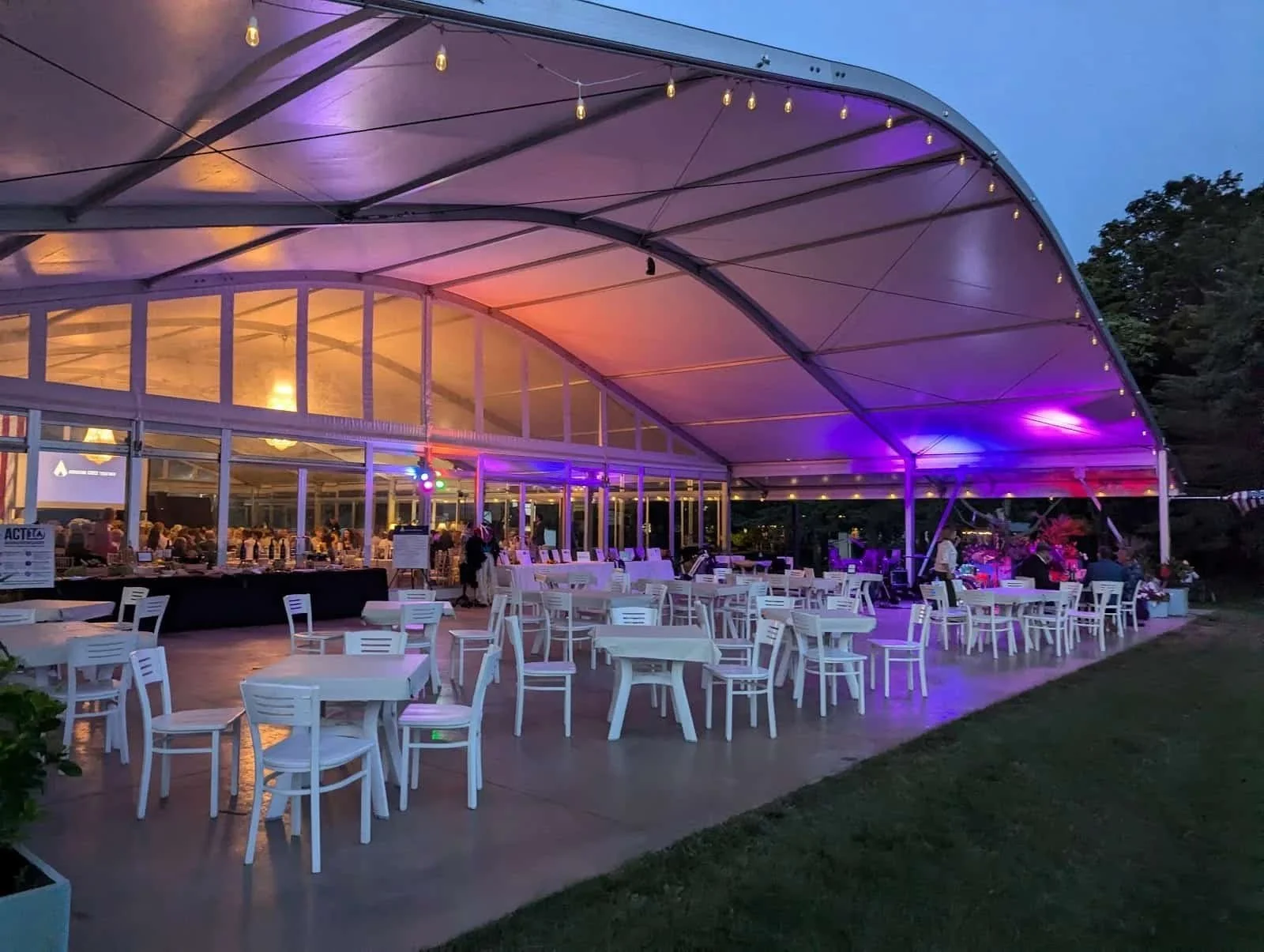 A formal, seasonal pavilion accommodating up to 500 guests. Ideal for corporate events, concerts, fundraisers, and galas.